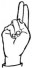 На ћирилици написано ДУШАН ЈЕВЂЕНОВИЋ састоји се из 15 слова [?]. Исписано ћириличном једноручном азбуком за глувонеме: